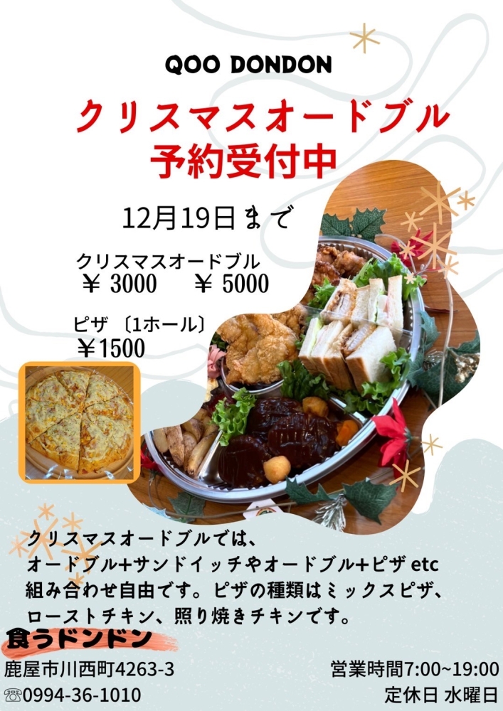 お知らせ 1周年祭・聖夜祭のお知らせ 2021.11.23 Tweet 食べもの処「食うドンドン」で1周年祭・聖夜祭を実施いたします。 ※ 1周年祭:12月11日(土)~12日(日) ご来店のお客様には、日頃の感謝に応えて特別割引券を進呈 ※ 聖 夜 祭:12月24日(金)~25日(土) この期間でご予約されたお客様には、お徳用なオードブルとピザを クリスマスバージョンにして販売いたします。 Category:お知らせ /blog/blog_comments/captcha/23874921 /blog/blog_comments/get_token ≪ CHOCOLATE FAIR(チョコレートフェア) 年末・年始の営業について ≫