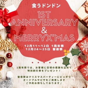 1周年祭・聖夜祭のお知らせ 2021.11.23 Tweet 食べもの処「食うドンドン」で1周年祭・聖夜祭を実施いたします。 ※ 1周年祭:12月11日(土)~12日(日) ご来店のお客様には、日頃の感謝に応えて特別割引券を進呈 ※ 聖 夜 祭:12月24日(金)~25日(土) この期間でご予約されたお客様には、お徳用なオードブルとピザを クリスマスバージョンにして販売いたします。 Category:お知らせ /blog/blog_comments/captcha/23874921 /blog/blog_comments/get_token